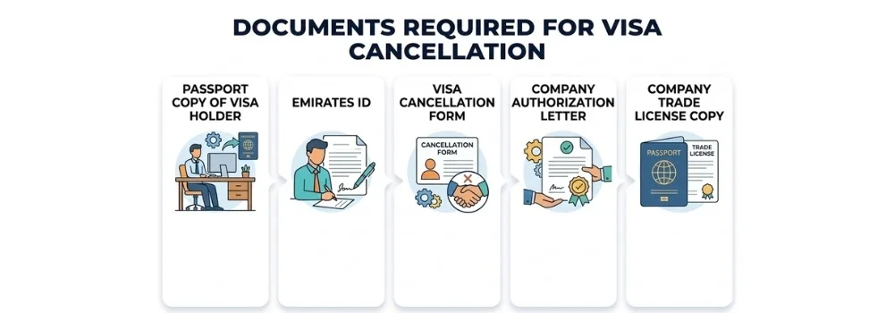 Having these documents ready early will help minimise the Dubai free zone visa cancellation time and prevent the process from stalling due to missing information.
