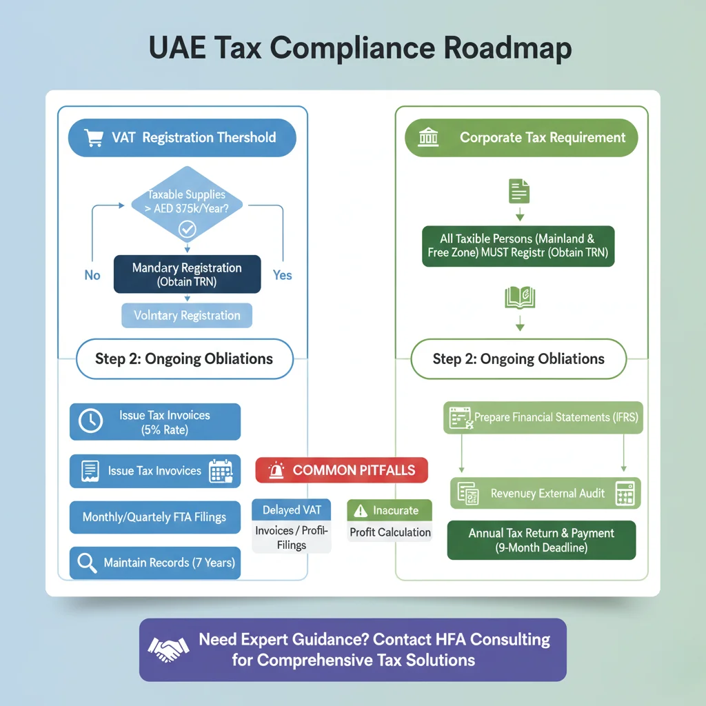 The administrative burden of managing two simultaneous tax regimes is significant. VAT requires frequent, high-volume transactional reporting, while Corporate Tax demands detailed annual financial audits and precise expense categorization.